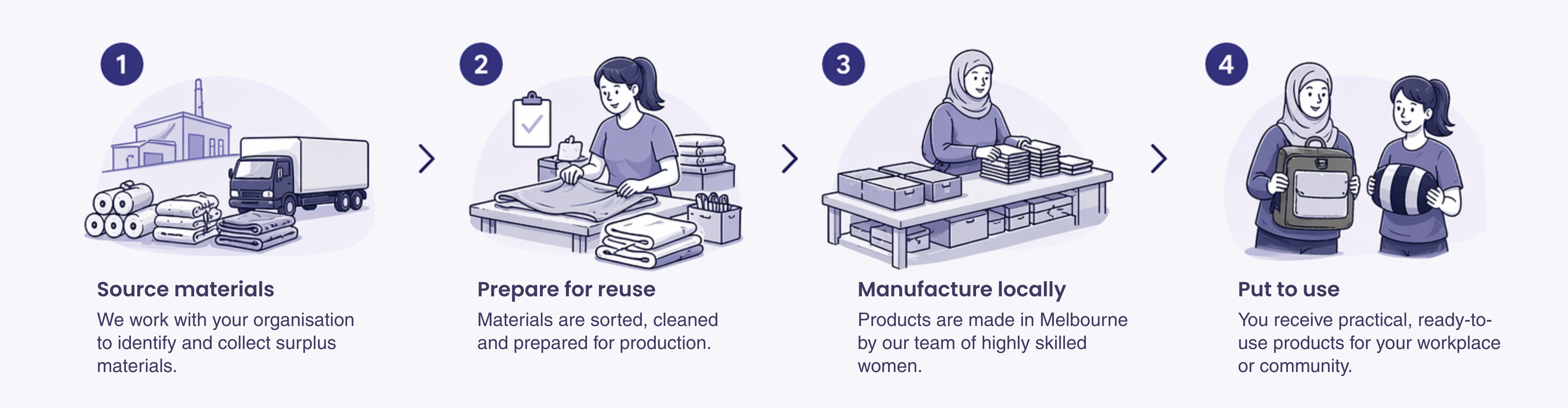 Turn uniforms, merchandise and materials into useful products instead of landfill.